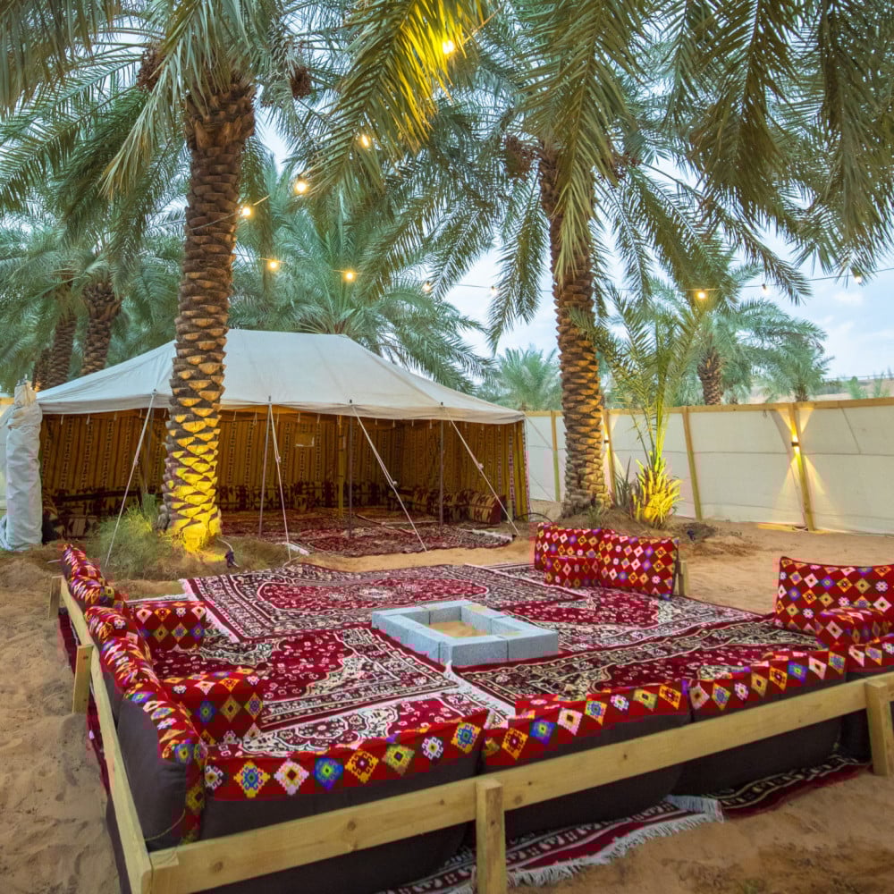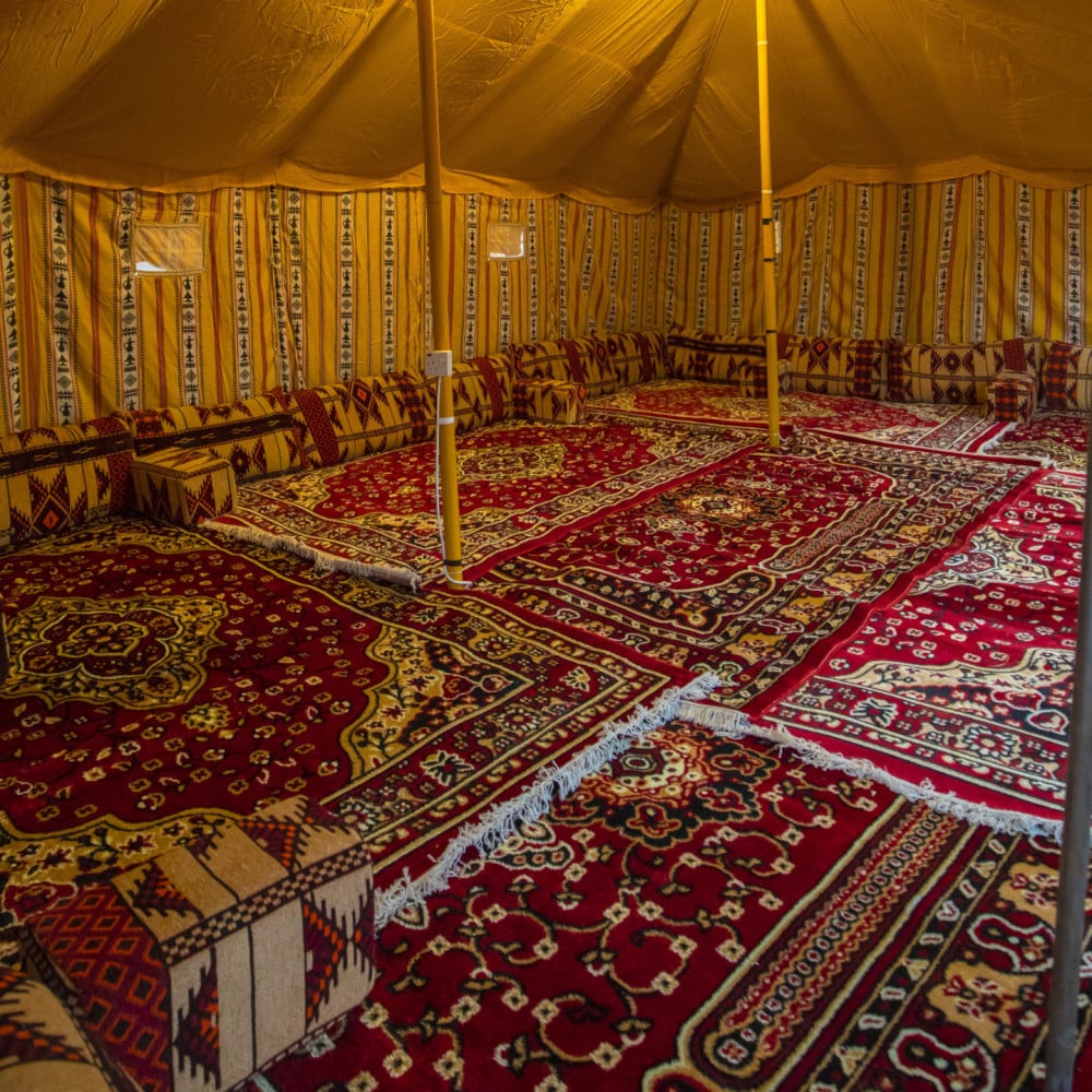 - خيمة ضيافة واسعة بمقاس 8 × 5 متر، تتيح المساحة الكافية لجميع الضيوف للاسترخاء والتمتع بالراحة.