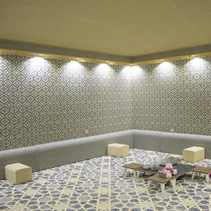 - خيمة ضيافة ملكية بمقاس 6 × 5 متر، بتكييف 18 ألف وحدة وشاشة بمقياس 50 بوصة تتيح المساحة الكافية لجميع الضيوف للاسترخاء والتمتع بالراحة.